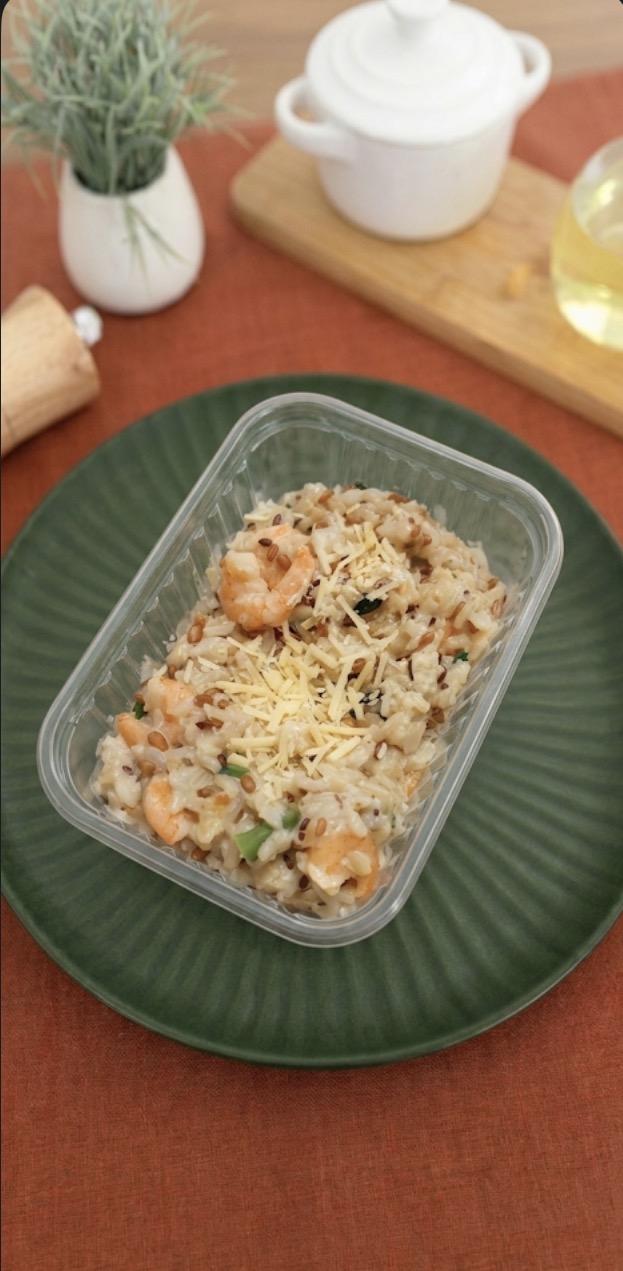 Risotto de camarão + arroz 7 grãos + espinafre