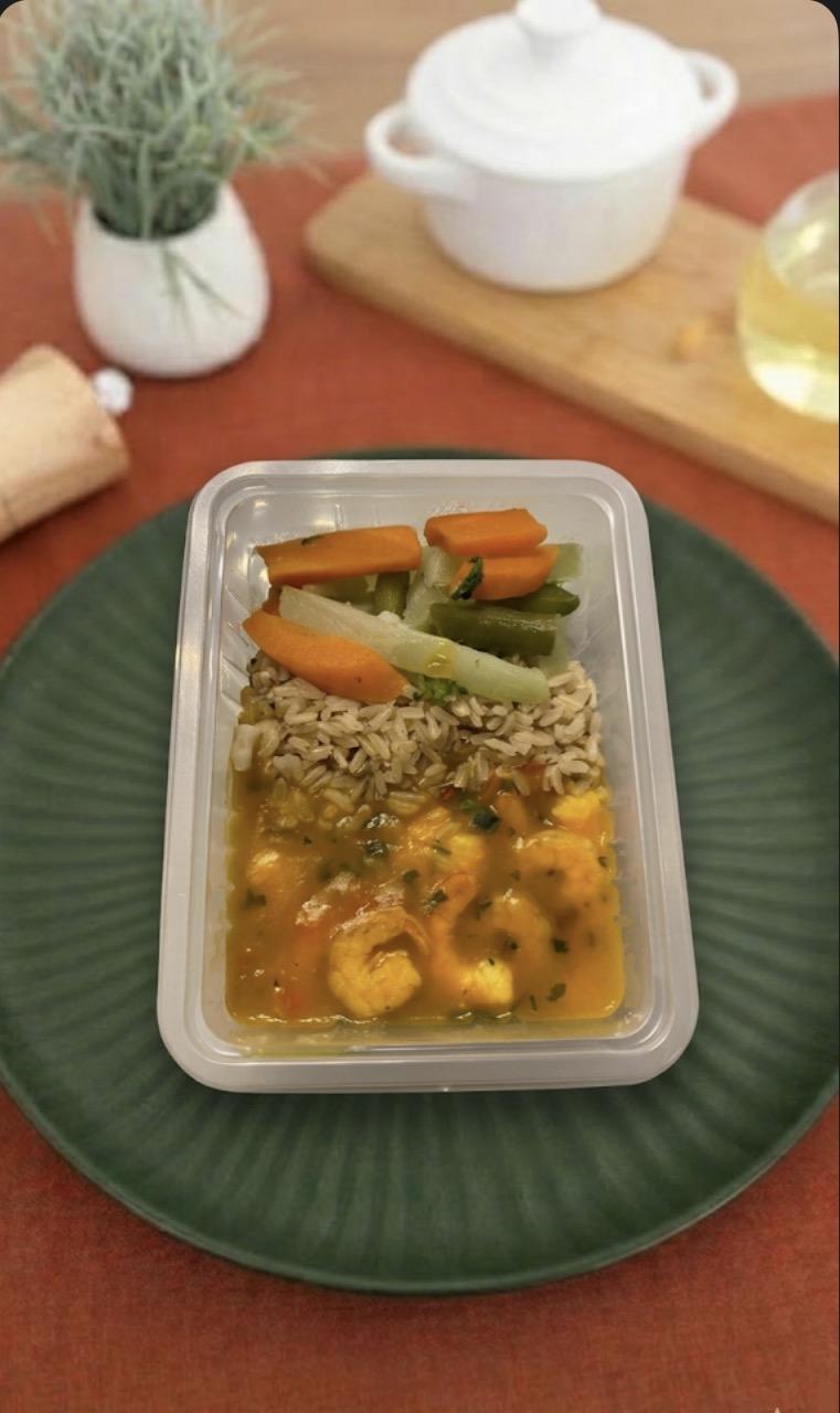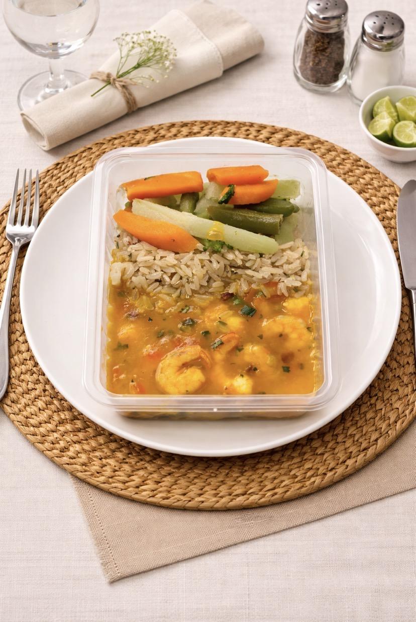 Bobó de camarão funcional + arroz integral + leg ao vapor