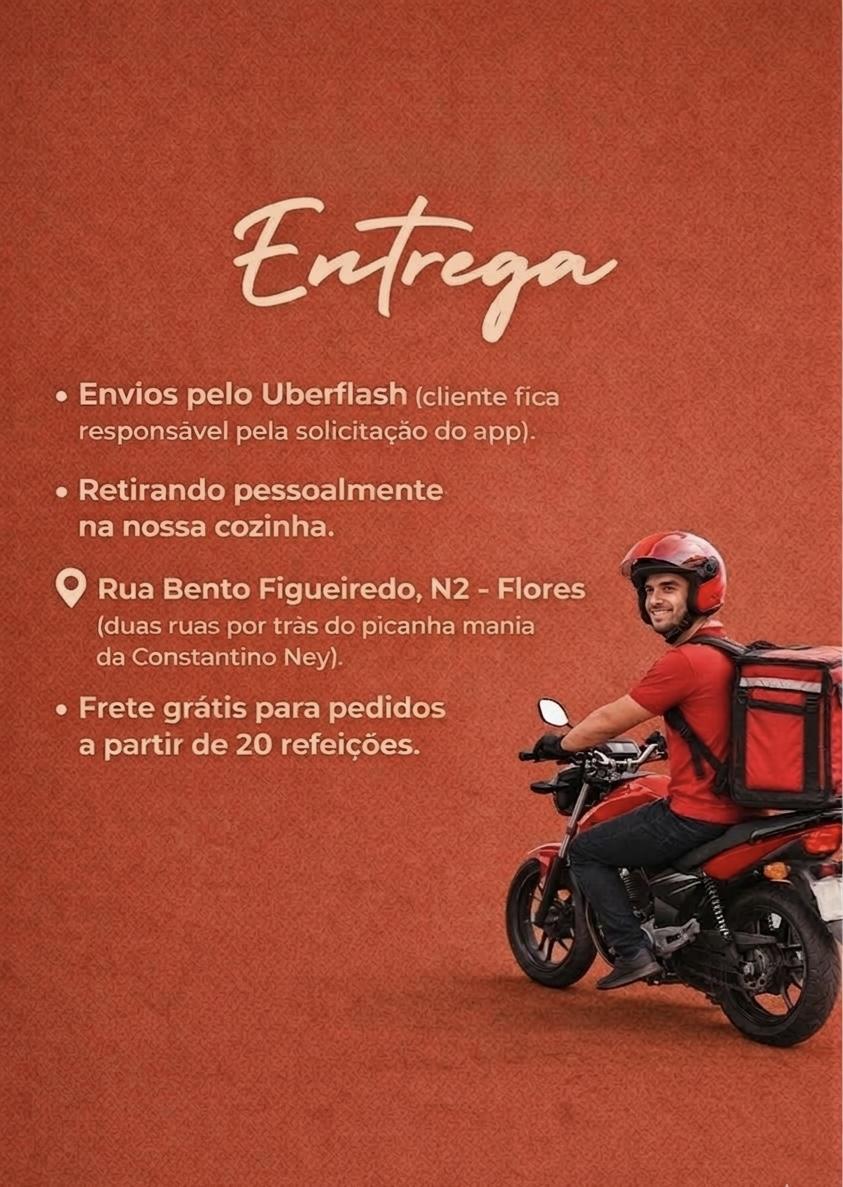 🚚 Entrega grátis para pedidos a partir de 20 marmitas.
